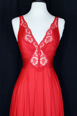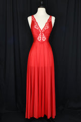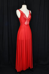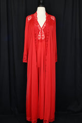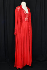 Vintage Olga brand matching set of hot red lace-edged nylon robe and slip.Tagged size medium.